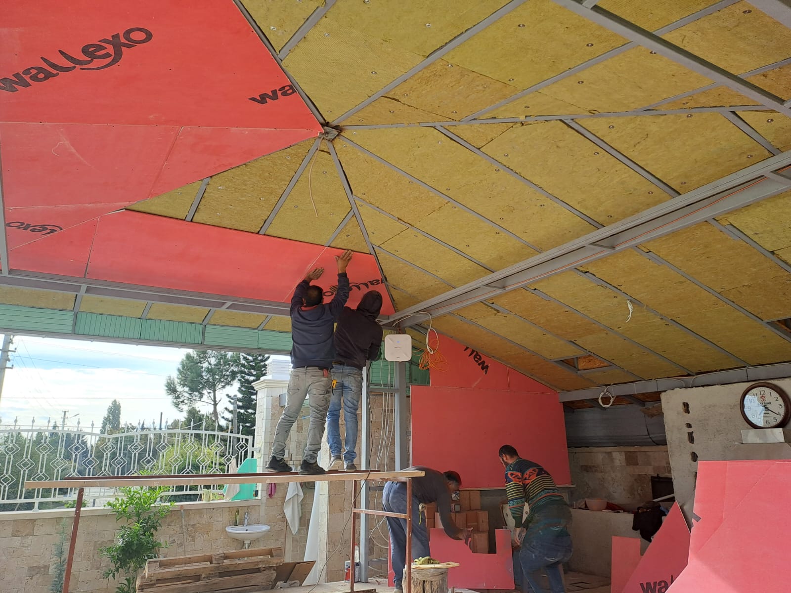 Bunun yanı sıra duvarlarda ısı yalıtım için ise bazı farklı malzemelerin duvarlara monte edilmesiyle binanın dışından ve içinden olmak üzere 2 katmanı da kaplanmaktadır. Bu kaplama malzemeler sayesinde duvarlardan içeriye sıcak hava veya soğuk hava girişi olmadığı gibi aynı zamanda içeriden dışarıya soğuk hava veya sıcak hava çıkışı olmamaktadır.